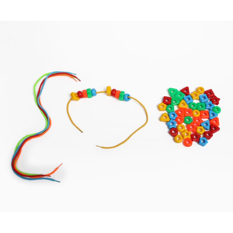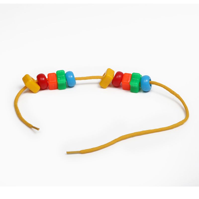 یک محصول فوق العاده پر خاصیت بر اساس روش آموزش مونته سوری. این محصول شامل 50 مهره پلاستیکی با رنگهای شاد و جذاب و اشکال متنوع به همراه 5 بند بافته رنگی است. نخ کردن مهرهها خود بهتنهایی فعالیتی سرگرمکننده و در عین حال مفید برای کودکان محسوب میشود.